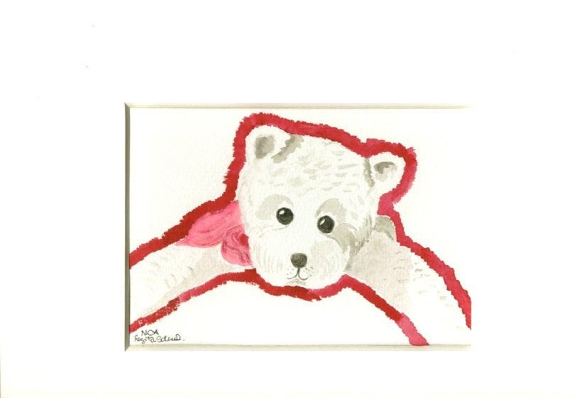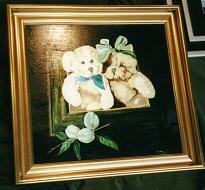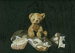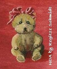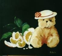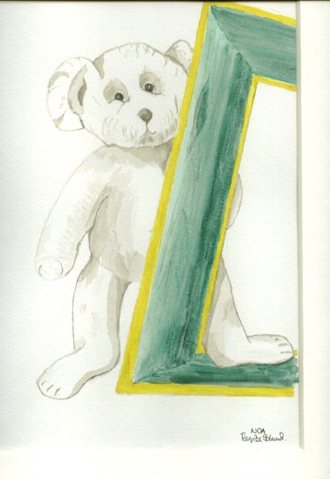 Er du blevet "for voksen" til den fysiske, så hav et billede, tegning eller maleri på væggen i stedet. Jeg tegner eller maler din bamse - eller en fiktiv.